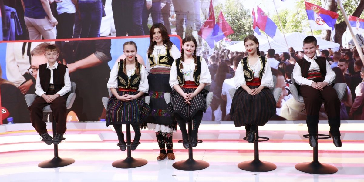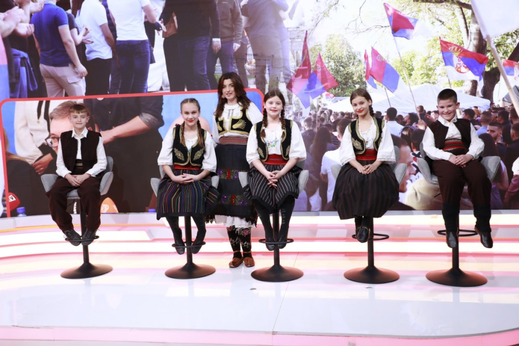 Elegantna nošnja, bogato ukrašena detaljima karakterističnim za jedan od naših krajeva, Staši je savršeno pristajala. Voditeljka je danas imala i specijalne pomoćnike, mališane iz kulturno-umetničkog društva koji su svojim prisustvom u narodnim nošnjama ulepšali studio naše televizije.