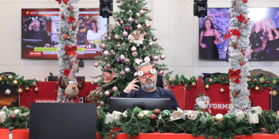 Vučićević je, u duhu praznika, stavio naočare i rajf sa Deda Mrazovima i prekinuo program Info jutra da bi čestitao gledaocima Novu godinu i poželeo pesmu, s obzirom na to da je u studiju bila muzika.