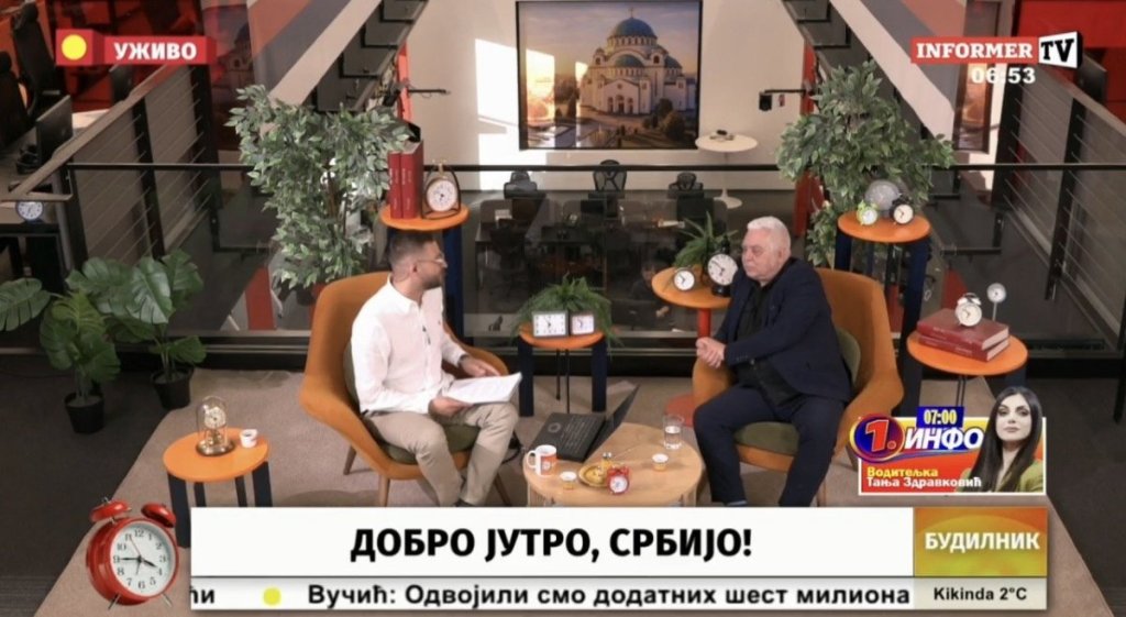 Prve vesti dana, najvažnije servisne informacije, ekskluzivna saznanja, ali i teme koje će obeležiti dan svakog radnog dana od 04.45 do 07.00 časova gledaćete na Informer televiziji.