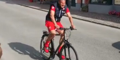 Naš reporter snimio je crveno-beli četverac u sastavu Gobeljić, Čaušć, Rosić i Boaći kako biciklima idu na utakmicu protiv Vindisgartena.
