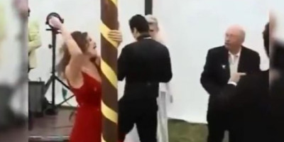Previše veselu gošću, pogodila je pesma, ali očigledno i koja čašica više. Usledila je katastofa, video koji masovni šeruju korisnici ineterneta, mladenicima verovtno i nije toliko smešan.