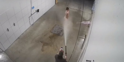 Na snimcima je go muškarac kojeg vodenim pištoljem pere prijatelj dok ovaj pokriva strateška mesta. Bilo im je sve zabavno pa su se i snimali.