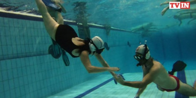 Ovoga puta posetila je bazen na Tašmajdanu gde je uz pomoć momaka iz kluba "Calypso" igrala hokej pod vodom.