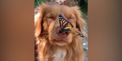 Labrador je bio iznenađen njegovom posetom, ali nije pravio buku, već je ostao smiren, mada njegov izraz lica govori da je bio šokiran, jer nije svestan šta ga je snašlo.