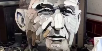 Naime on je pomoću patika, cipela i uložaka od obuće napravio ljudski lik. Kada se gleda pravo vidi se čovek, dok kako se pomerate, iz ostalih uglova, ta slika čoveka nestaje.