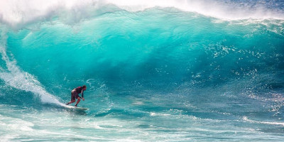 Dok se mnogi ne bi usudili da surfuju ni na malim talasima, ovaj mladić jedva je čekao da se suoči sa ovom gromadom od vode.
