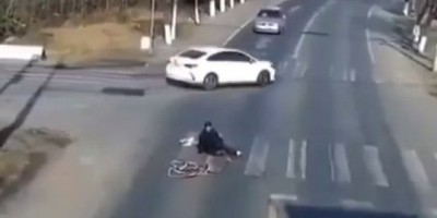 I kada su svi pomislili da se desila velika tragedija, biciklista je ustao i odšetao s puta, a stradao je samo njegov bicikl.