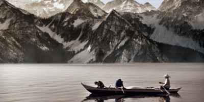 Ništa ne bi bilo neobično da oni veslaju po jezeru, ali neobično je to što je njihov start visok i to na snežnoj uzbrdici.