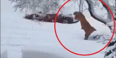 Na snimku koji je osvanuo ovih dana jasno se vidi kako preko snegom pokrivenog parka prolazi - dinosaurus!