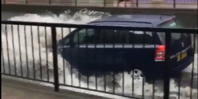 Jedan vozač odlučio je da igonoriše činjenicu da saobraćaj oko njega stoji, pa je pokušao da prođe kod podvožnjak, računajući da se ispod samo stvorila barica.
