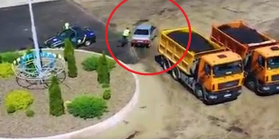 Snimak je nastao u Ukrajini, i prati situaciju koja se desila na još nezavršenom kružnom toku.