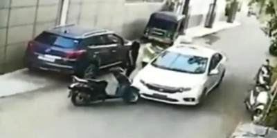 Moped i auto su se "sreli" nasred ulice, a onda je vozač mopeda podivljaoi nasnuo na čoveka u kolima.