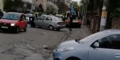 Posle kratke rasprave, počinilac prekršaja pokušava da odveze auto preko puta ulice, na parking mesto.