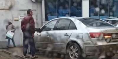 Iako je delovalo da će onaj u kolima da ode, on je zapravo samo hvatao zalet i zakučao čoveka u ogradu.