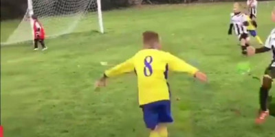 Kako bi sačuvao gol, pošto je lopta već bila ispucana, tata je gurnuo sina i tako odbranio.