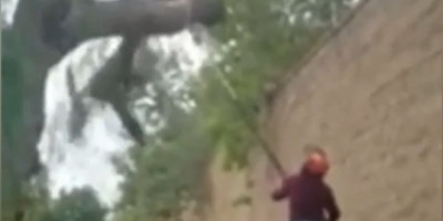 Dakle, on se popeo na merdevine, uzeo motornu testeru i pokušao da odseče neobičnu granu sa starog drveta.