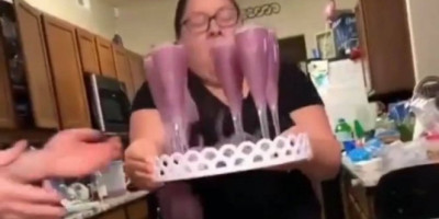 Sve čaše su joj poispadale i sve se prosulo.