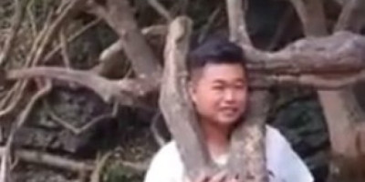 On je provukao glavu kroz jednu granu kako bi slika ispala što neobičnija, ali izgleda da će mu glava tu i ostati.
