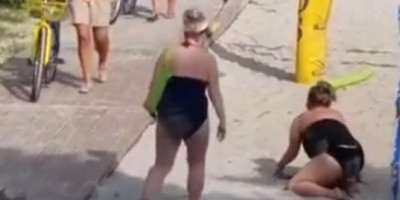 Njih dve su krenule s plaže, pod dobranim gasom očigledno, pa su naočigled šokiranih turista padale po stazi i posrtale kao pijane kokoške.