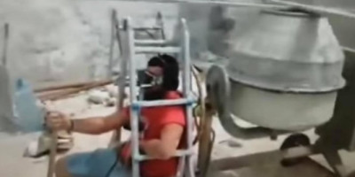 Čim je mešalica počela da radi, elisa se pokrenula, a njegova zamišljena mašina poletela.