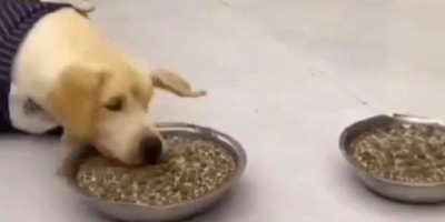 Hrana je bila svuda po podu, a drugi pas je pobegao glavom bez obzira.