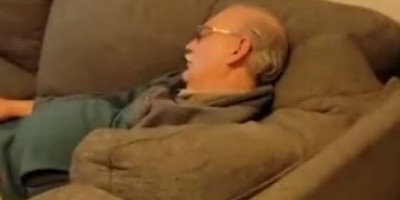 Njegov vlasnik je zaspao, a u ruci drži lopticu sa kojom se kuca igra.