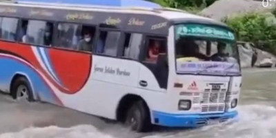 Vozač ovog autobusa se ne zaustavlja kada mu se potok pun kamenja nađe na putu.