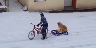 Stavio ga je u sanke, vezao ih sa svojom biciklom i čarolija je počela.