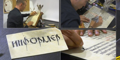 - Pergament se proizvodi na specifičan način. To je jereća koža, koja je štavljena ,odnosno sedam dana ježala u krečnim vodama. Nakon toga glača se i suši. Dugo traje proizvodnja i zbog toga je skup i cena A3 formara ide i do 80 evra. Skup je zato što je to nešto večno. Miroslavljevo jevanđeje izrađeno je na pergamentu i do danas traje, boje su možda oksidirale, ali sam materijal je očuvan do danas - objašnjava Dušan.