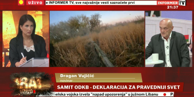 - Kada je "Orešnik" izašao britanski mediji su pisali da može da prekrije samo zlatnu milju, međurtim sada imamo situaciju da više nijedan nosač aviona više nije bezbedan od njega. Holanđani su Kijevu dali tri "Patriota", a Britanci parkirali nekoliko aviona, ali to je to, Zelenski bi rado gađao Moskvu ili Sankt Peterburg da ima nešto popu "Orešnika", mada on to jeste pokušao. Lindzi Grejem je izračunao da 20 biliona dolara nečega ima ispod Ukrajine koja je sada devastirana i raseljena, a Zelenskom nisu bitni ljudi nego lična dobit - rekao je Vujičić.