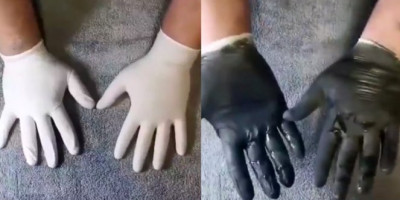 Koristeći par hiruških rukavica i crnu temperu, čovek je detaljno objasnio zašto je potrebno trljati sve delove šaka, i gde pravimo propuste.