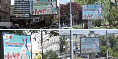 Čelnici naše zemlje su širom Beograda postavili bilborde na kojima se zahvaljuju svojim sugrađanima. Na bilbordima se simbolično nalazi spomenik "Pobednik" kao simbol Beograda, zdravstveni radnici i desetine ruku ljudi koje simbolizuju zajedništvo, jedinstvo i vreme kada su svi ili skoro svi Beograđani pružali veliku podršku onima koji su se borili za živote svih nas.