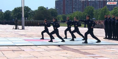 Prikaz borilačkih veština izveli su polaznici Centra za osnovnu policijsku obuku, a oni su na platou ispred Palate Srbija pokazali vežbu “pištolj-kate”, koja predstavlja kombinaciju karate tehnika i stavova za gađanje vatrenim oružjem.