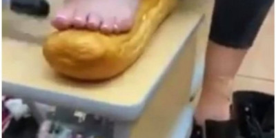 Ova žena očigledno ima svakakve cipele, ali ne i one napravljene od hleba.