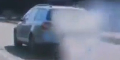 Naime, njegov automobil samo što se nije zapalio, dim kulja na sve strane, a on i dalje vozi kao da ga se to uopšte ne tiče.