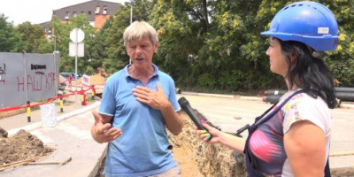 Ona se pre nekoliko nedelja pridtužila radnicima na Banovom brdu koji postavljaju toplovod.