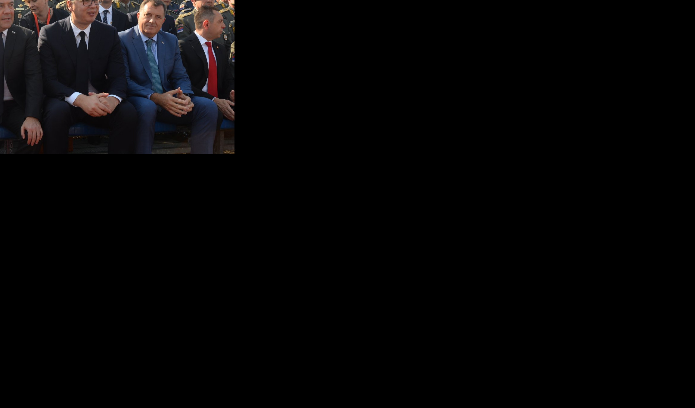 12.45 - Počeo prikaz sposobnosti Vojske Srbije Sloboda 2019. Predsednik Srbije Aleksandar Vucic, ruski premijer Dmitrij Medvedev i srpski član Predsedništva BiH Milorad Dodik posmatraju demonstriranje sposobnosti Vojske Srbije