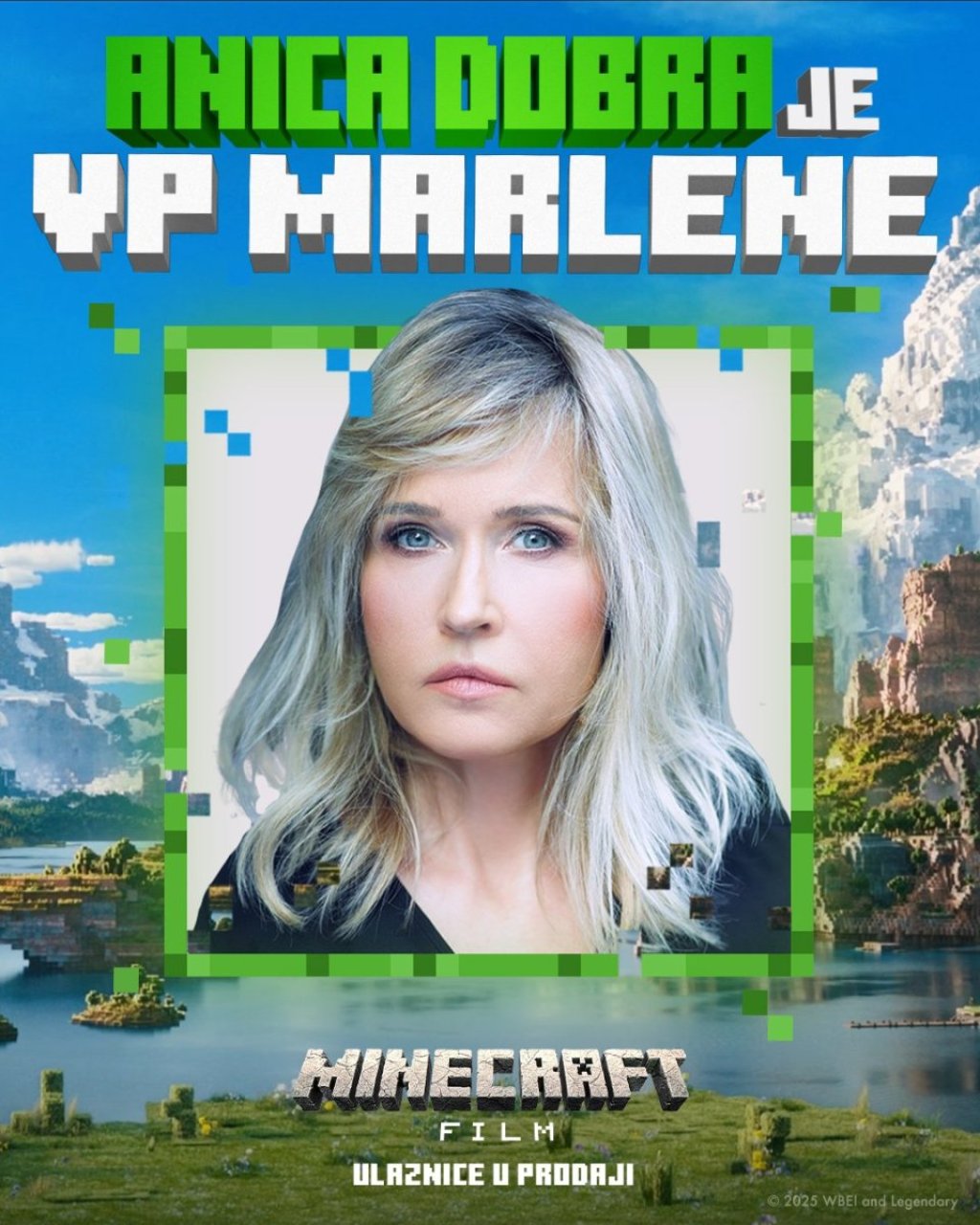 Zvezda srpskog glumišta Anica Dobra daje glas liku zamenice direktora Marlene u predstojećem avanturističkom filmu "Minecraft film", inspirisanom najprodavanijom video igricom svih vremena.