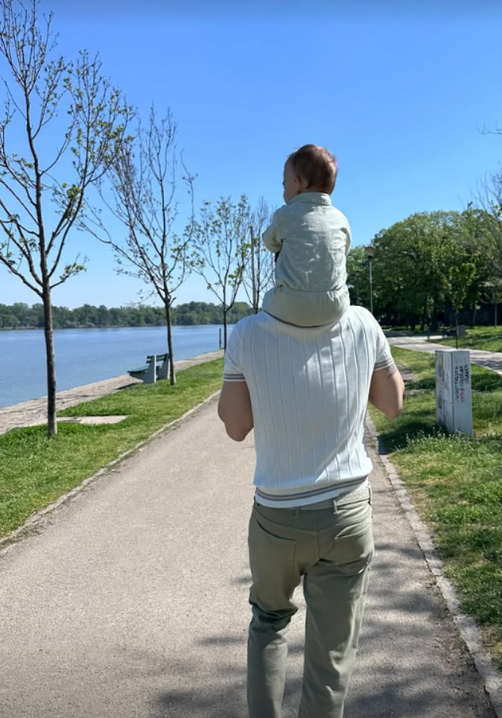 Na jednoj od njih, Vasilije sedi na ramenima slavnog glumca dok zajedno šetaju beogradskim ulicama, dok se na drugoj vidi kako Ivana s osmehom posmatra sina dok se igra pored reke.