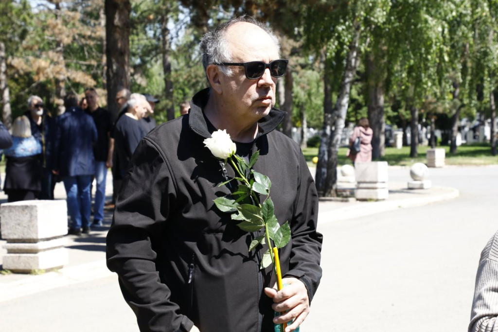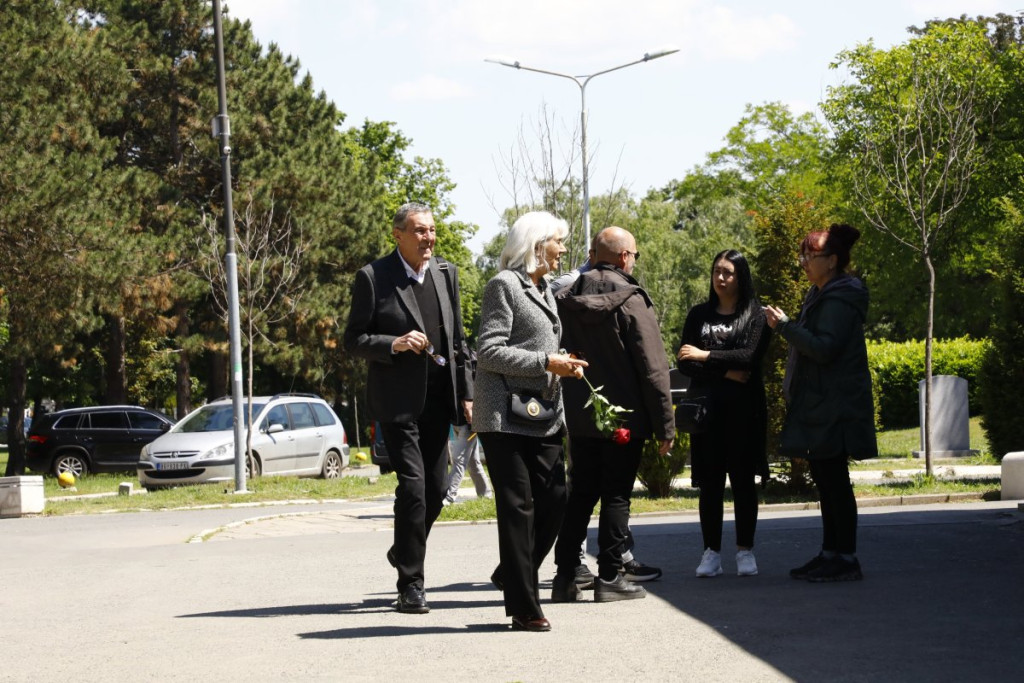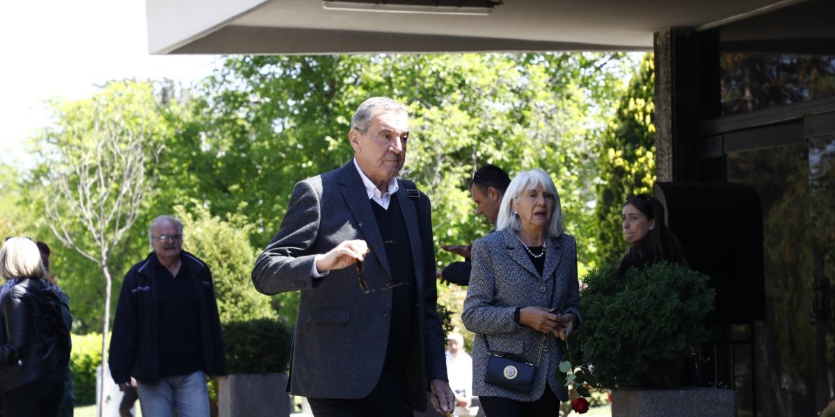 11:17 Na groblje su stigli i Svetislav Bule Goncić i njegova supruga Gordana Goncić. Bule je u ruci nosio belu ružu