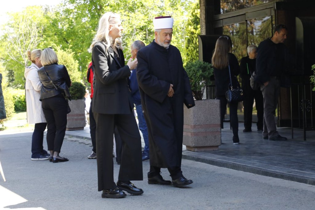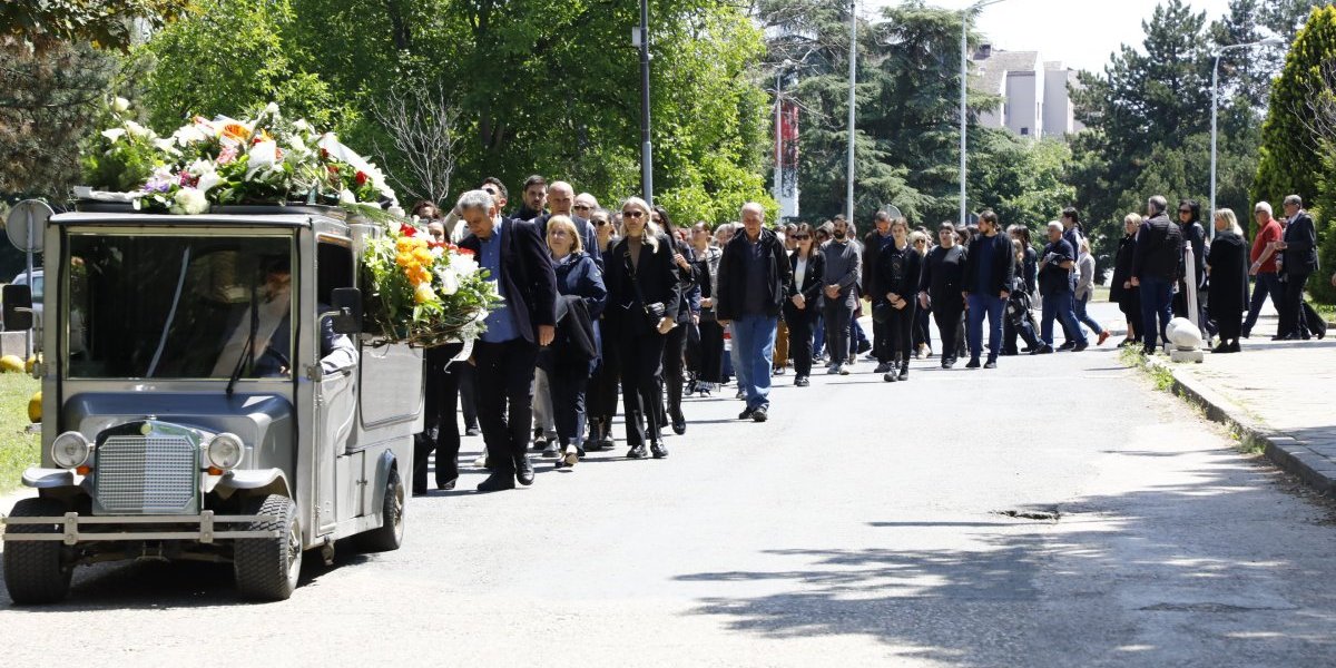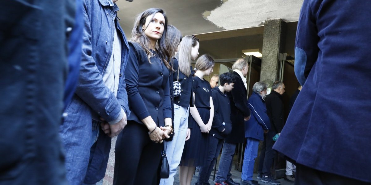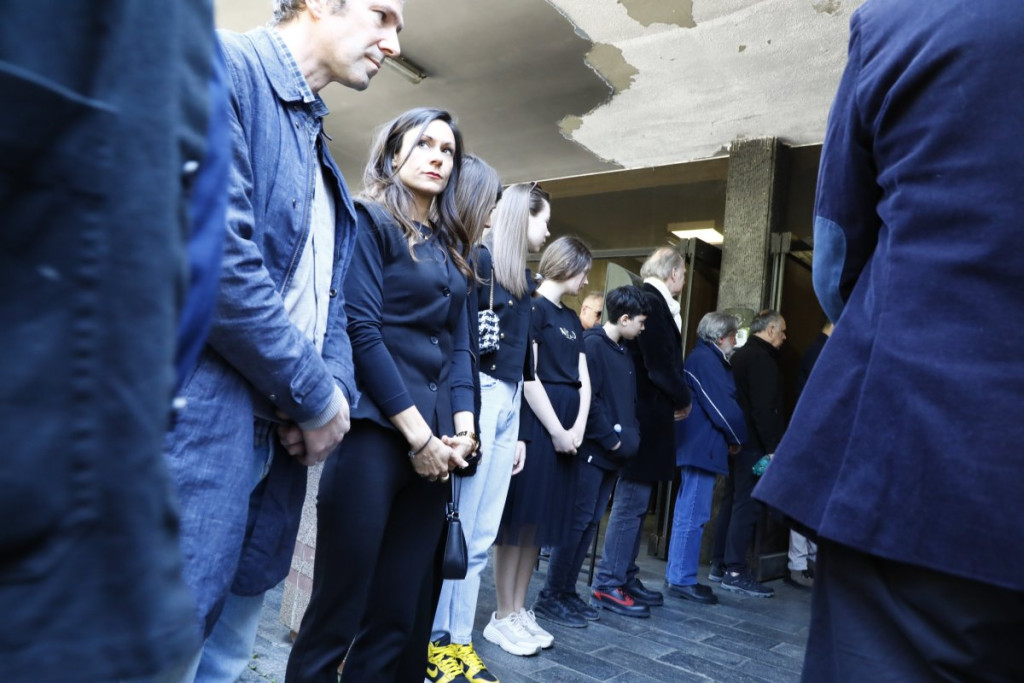 10:45 Prva je na groblje stigla njegova porodica, supruga Lena i ćerka Una. Njih dve su u kapeli i primaju saučešća.