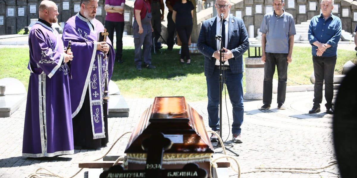 Opelo Dimitriju Bjelici je upravo završeno, a povorka je krenula ka Aleji zaslužnih građana gde će Dimitrije biti sahranjen. Krst je na čelu kolone nosio njegov unuk Lav Pajkić.