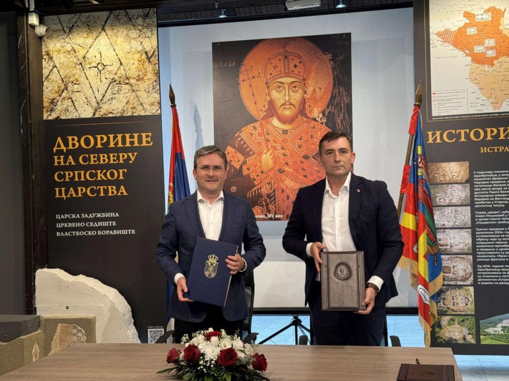 Ministar kulture Nikola Selaković je potpisao ugovore sa direktorom Narodnog muzeja u Aranđelovcu Darkom Pavlovićem u prisustvu predsednika opštine Aranđelovac Bojana Radovića.