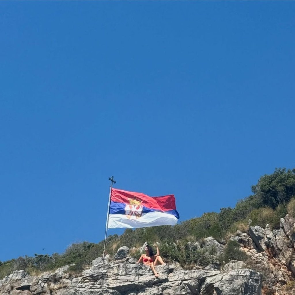Na jednoj od fotografija, Isidora ponosno pozira u izazovnom kupaćem kostimu ispred srpske zastave.