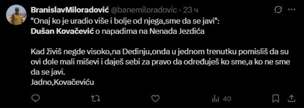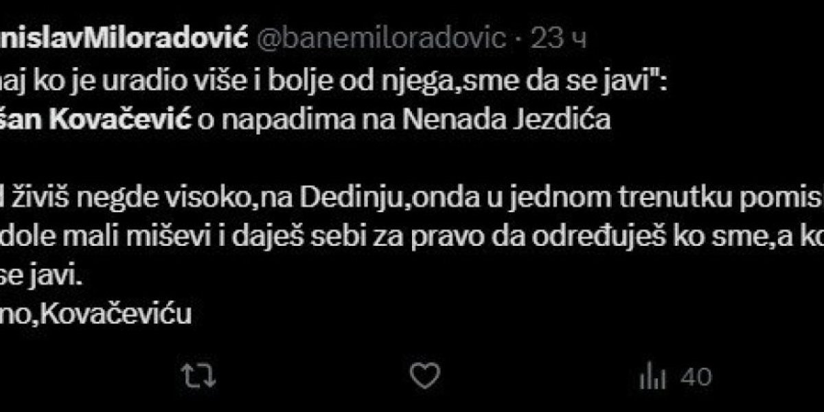 Kovačević je stao u njegovu odbranu, naglasivši da pravo na kritiku imaju samo oni koji su ostvarili više od njega.