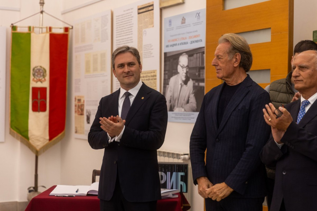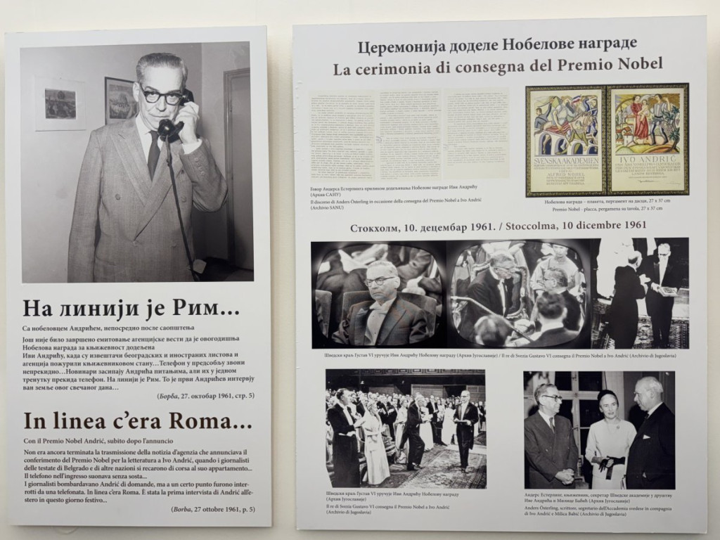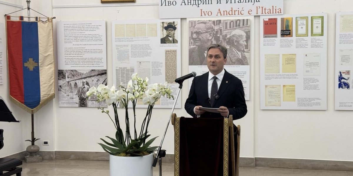 - Njegove reči nas i danas uče da je u tišini sigurnost, a u kulturi - trajnost. Tako i ova postavka, koju je priredio Arhiv Srbije, uz podršku Ministarstva kulture Republike Srbije, nije samo omaž velikom piscu. Ona je i svedočanstvo trajne kulturne veze Srbije i Italije, kao i primer kako kulturna diplomatija gradi mostove razumevanja i prijateljstva i dan-danas. Kada se ovde okupljamo, mi ne odajemo samo počast i poštu Andriću već i potvrđujemo da kultura ostaje najdublji temelj saradnje među narodima - istakao je Selaković.