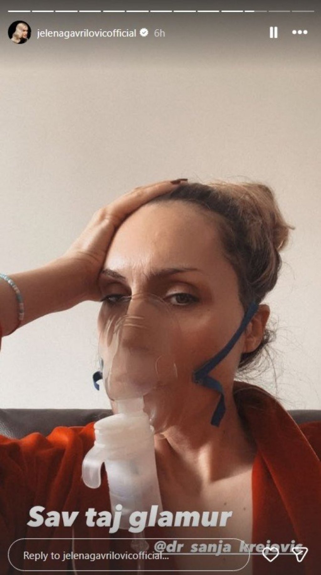 Popularna glumica Jelena Gavrilović zabrinula je svoje pratioce na Instagramu nakon što je na storiju objavila fotografiju na kojoj nosi masku za kiseonik.