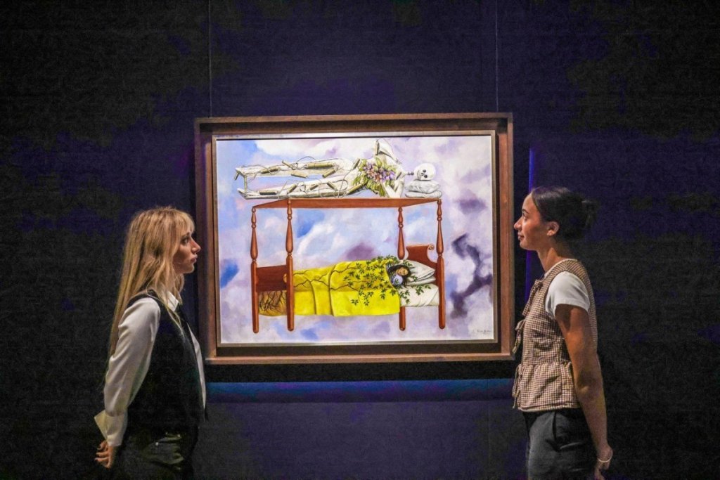 Slika, koja nije bila javno prikazana gotovo 30 godina, prethodno je prikazana u Londonu, Abu Dabiju, Hong Kongu, Parizu i Njujorku. Na njoj je prikazana Kalo kako leži na krevetu koji lebdi na bledoplavoj pozadini, sa zelenim lozama koje obavijaju njeno telo i skeletom okačenim iznad nje, koji drži buket suvog cveća.