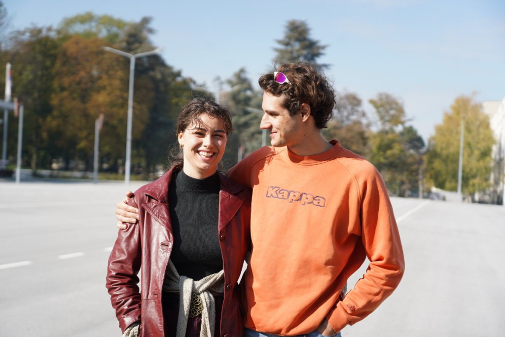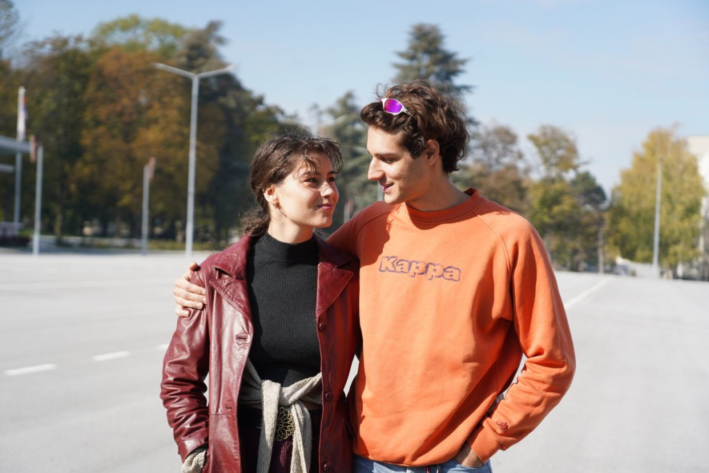 Društvo mu je pravila partnerka u seriji Darija sa kojom je sve vreme razgovarao i šalio se. U jednom trenutku su se zagrlili i pozirali za fotoreportere.