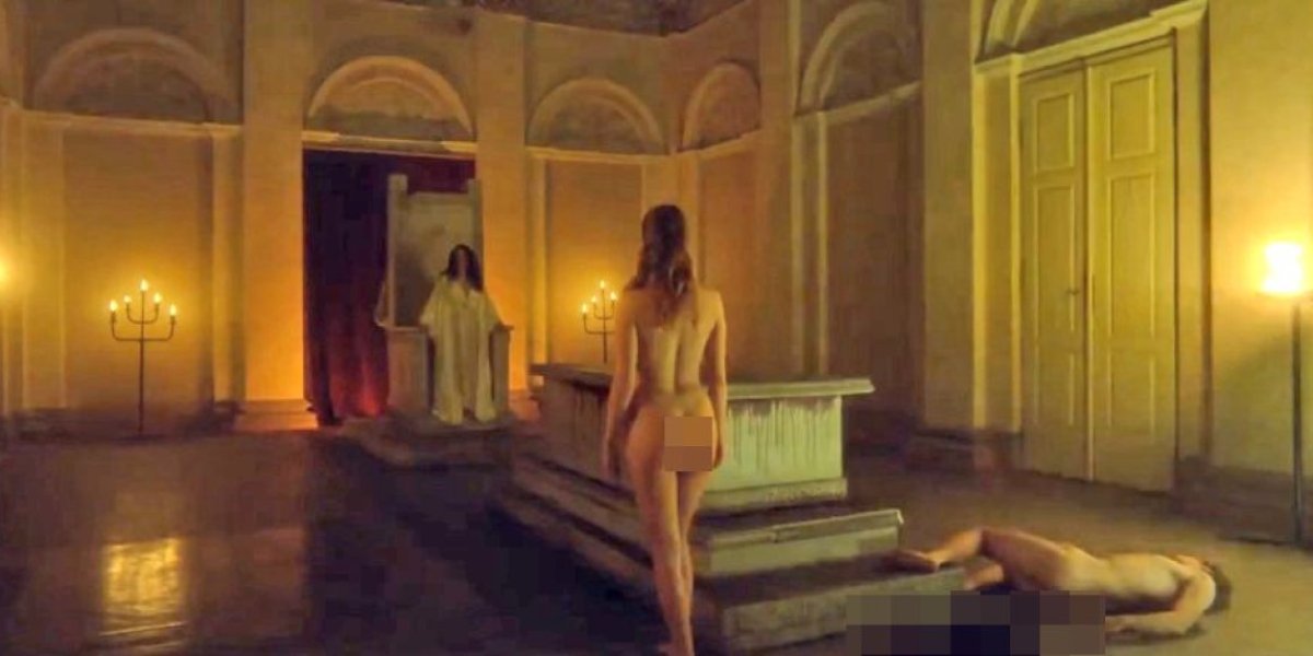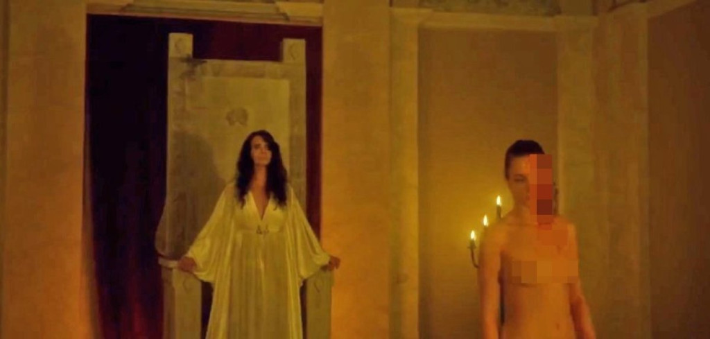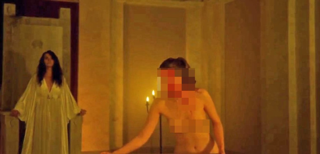 Glumica se potpuno obnažila, a lice joj je bilo oblivljeno krvlju.